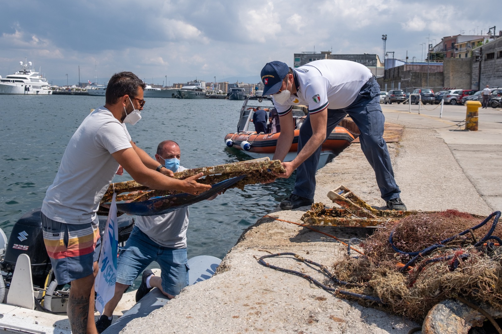 Tra il materiale rimosso dai fondali – che sono stati così bonificati – anche pneumatici di auto e camion, attrezzi da pesca, sacchetti, bottiglie e materiale plastico, sedie e lettini da spiaggia, guanti e stoviglie monouso, mascherine, fusti metallici, cassette, materiale elettronico di risulta, cime d’ormeggio e batterie esauste. Ancora, diverse “reti fantasma”, abbandonate sul fondo del mare e dannose per l’ambiente marino.