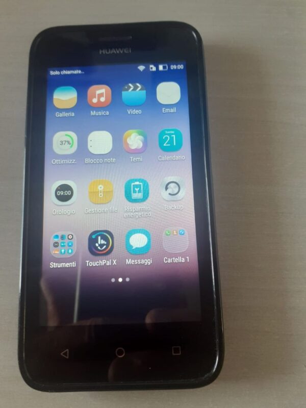Huawei mod.Y560-L01-carateristiche:IPS LCD touchscreen capacitivo,16M colori,4.5 pollici(~61,7%:schermo-a-corpo ratio), 480×854 pixel (~217,7 ppi densità di pixel) OS Android,v4.4.2 (KitKat),Quad-core 1.2 GHz Cortex-A53-8 GB,1 GB RAM-5 MP,2592 х 1944 pixel,autofocus,flash LED,2 MP Tecnologia cellulare:4G – colore nero.-