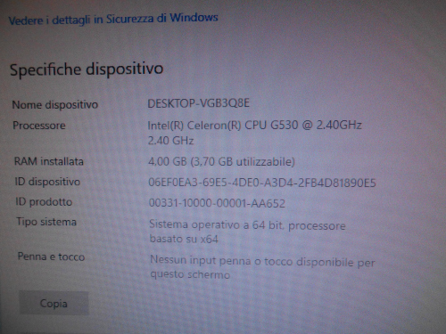 Intel Celeron CPU G530 da 2.40 gHZ;