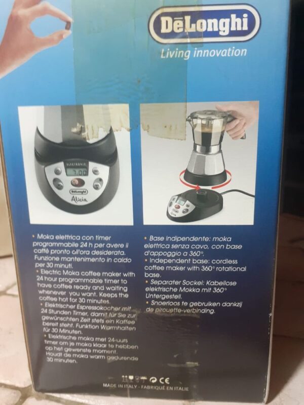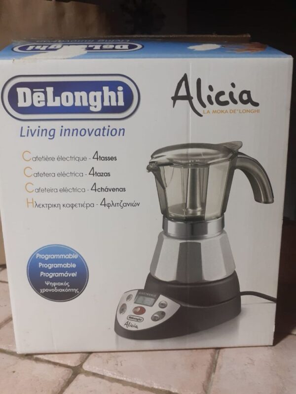 De’Longhi Alicia PLUS EMKP 21.B Caffettiera Moka Elettrica 4 Tazze, Nero/Argento- Moka elettrica con timer programmabile 24 h per avere il caffè pronto all’ora desiderata.funzione mantenimento in caldo per 30 minuti. €.60