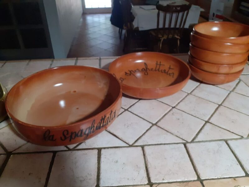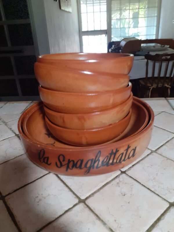 7 pezzi per spaghettata in terracotta -i5 piatti + 2 ciotole grande come da foto €.25–