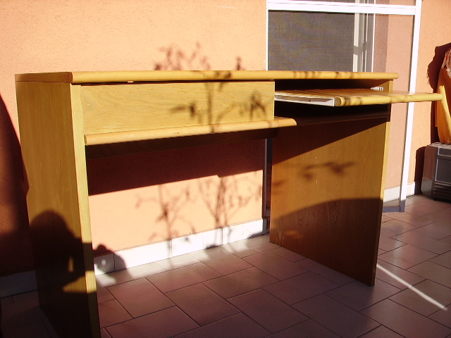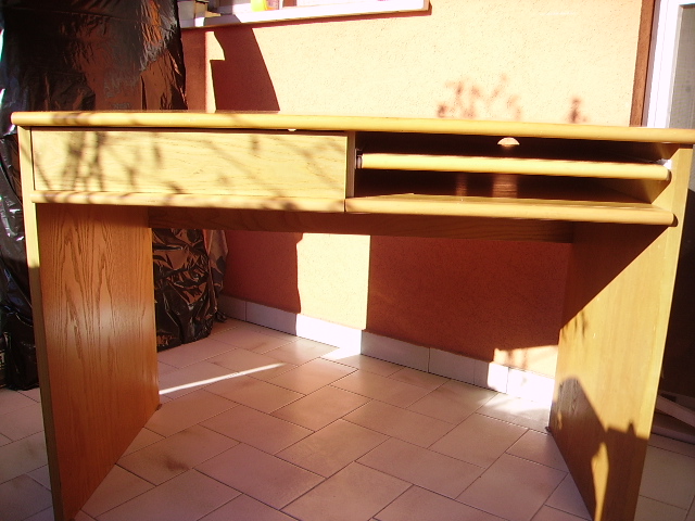 Scrivania in frassino con cassettiera e ripiano per tastiera (larg.Mt.1.10 larg. Cm.60 alt.cm.80) €.60